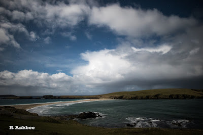 It was just after a full moon at Bigton when we made the short visit over the hill. An Aurora was showing but very faint in the moonlight.